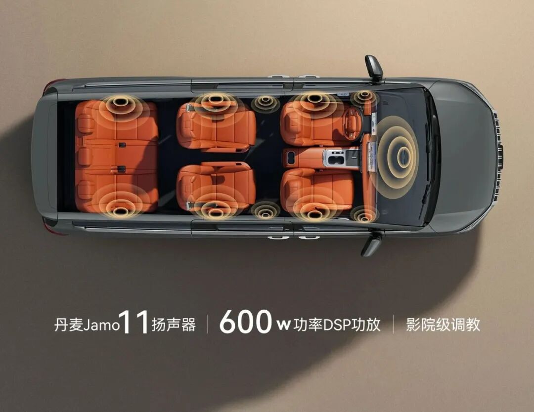 ·配备丹麦JAMO尊宝音响系统,11个扬声器,600W独立功放,提供4种专业预设音频调音及自定义调音,支持主驾、二排右侧、全车3种声场调节模式;