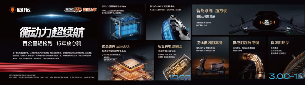 机遇面前,实力是最好的通行证。依托 30 年制造底蕴,欧派积淀深厚技术研发实力与成熟智能制造体系。从核心零部件自主创新,到整车品质精益求精,自研的衡动力 3.0 系统突破技术壁垒,精准直击行业痛点。该系统整合八大核心部件协同研发与系统级调校,实现动力输出、能耗管控、核心部件全方位升级。以 “动力更强、耗电更少、寿命更长” 的革命性突破,为 “超长续航、超强性能、超级安全、超高品质” 四大承诺提供硬核支撑。
